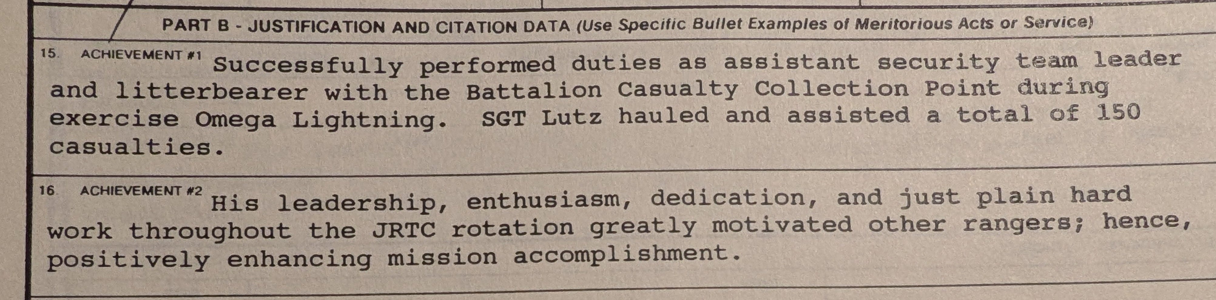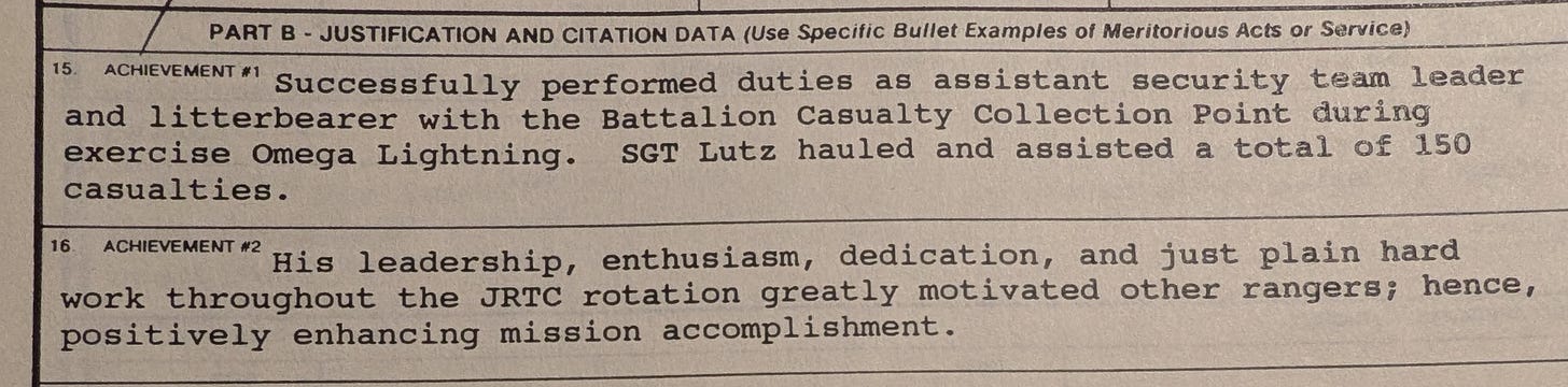 Hindsight. It was the leadership forced the full evacuation of the 150 casualties helped prepare mentally and physically – not too long after we ended up in Somalia for another pivotal event. That year before Somalia we trained really hard which helped us be better prepared.