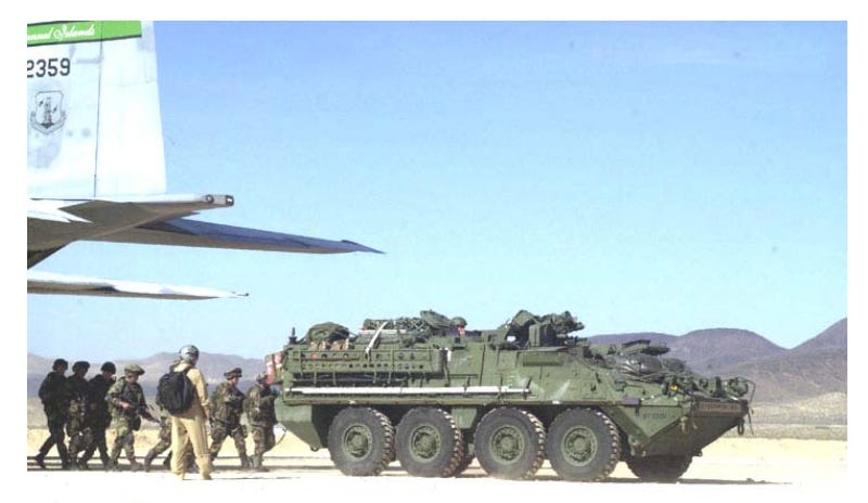 Stryker Infantry Carrier Vehicle squad: U.S. Army photo by CPT. FM 7-21.13, 2004, pg. 2-63.