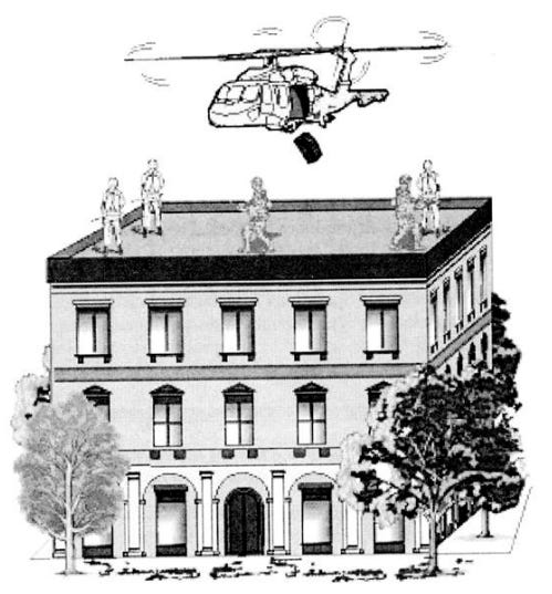 On 3 October 1993, TF Ranger descended on the Olympic Hotel in Mogadishu to capture key members of Aideed’s group. As Rangers established security around the hotel, helicopters loitered to provide support. Other U.S. Special Operations Soldiers entered the building and took custody of Aideed's operatives. Soon small arms fire began, wounding several members of the security team.