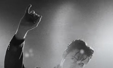 For example, just consider. It may just be “innocence”. But notice the hand signs they use, especially the Satanic “Devil Horns” he twitches his pinky, then leads into singing Trouble, a song in which a statement is made, “I am evil.”